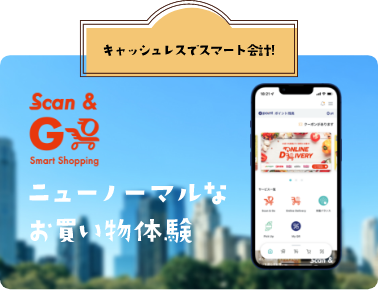 お買い物をしながら、お客さまご自身のスマートフォンで商品のバーコードをスキャンしたのち、レジに並ぶことなくすピーティーにお会計をしていただけるサービスです。